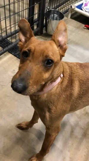 “Naomi is a female American Pit Bull Terrier with a short red coat.