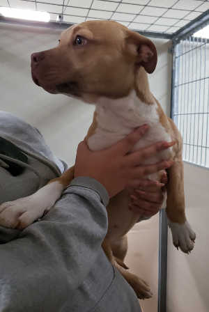 This young female pit bull terrier is in kennel No. 6, ID No. 13464. Photo courtesy of Lake County Animal Care and Control. Female pit bull terrier