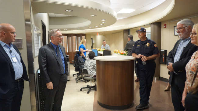 Santos and other Tribal Health leaders led visitors through the building, beginning on the first floor in the thoughtfully designed waiting rooms for children, adults and those waiting for labs, and then through the medical and dental suites on the first and second floors.