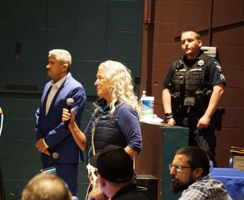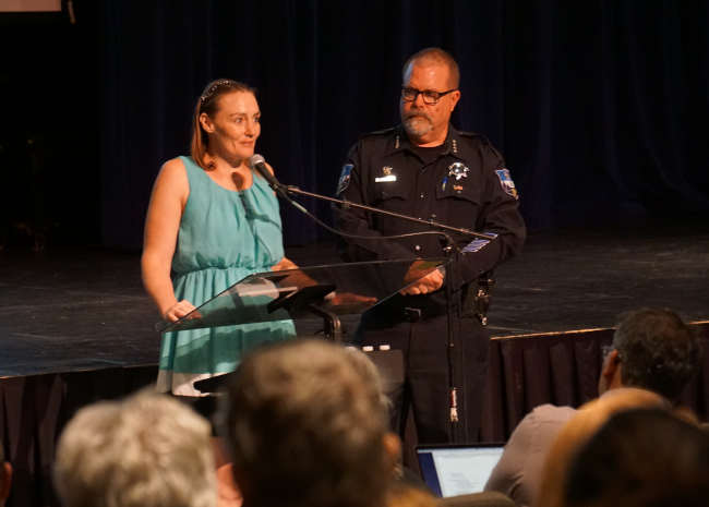 Rasmussen said his officers and Adams worked hard to help her, and their efforts resulted in her getting off the street and into a drug treatment facility. The week before the town hall, she made it through the 90-day program and graduated.