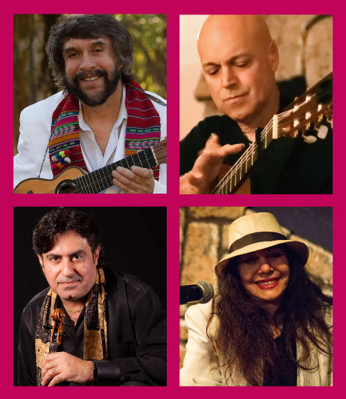 They come together in this inspired and unique performance of rumba, flamenco, Latin American, Middle Eastern and Andean music where each player brings his unique musical tradition to create an extraordinary and beautiful collaboration of international musical fusion.