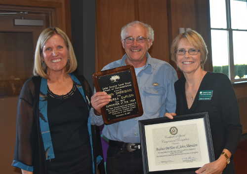 Sheridan, who was on hand to accept the award, spoke of his long-term relationship with the Land Trust and how “giving,” has helped him through many difficult periods of loss.