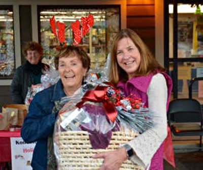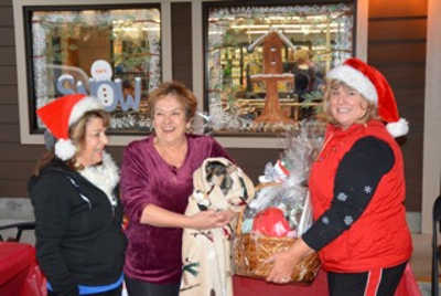 Linda Alves and her dog with the holiday basket she won from the Konocti Lioness Club in Kelseyville, Calif., in December 2017. Photo courtesy of the Konocti Lioness.