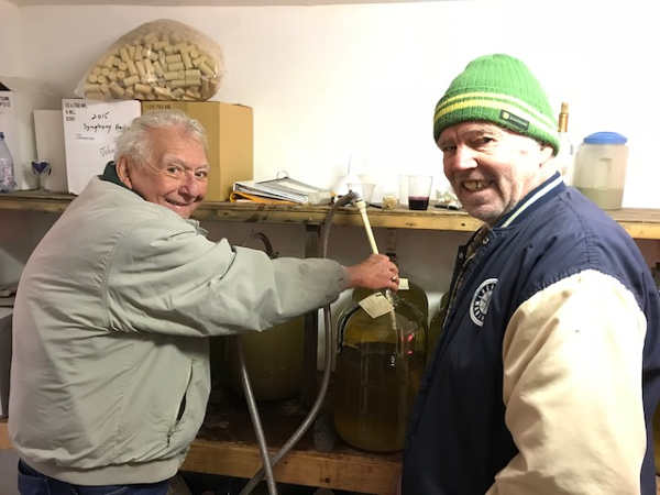 Club members typically pick for several hours – often in the hot sun – then transport the grapes to the club’s processing center (The Barn), where the grapes are crushed, fermented and prepared for bottling.