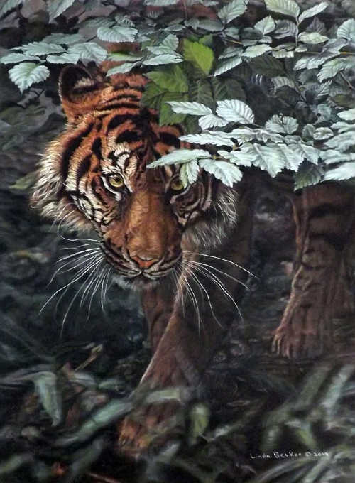 With her passion for art rekindled, Becker decided to attend college taking computer and several art classes consisting of drawing and painting, learning perspective, composition and the balance of color. She also received instruction from local established artists for many years. Her paintings consist of still life, portraits and wildlife. She started out using pencil, charcoal and ink, then ventured into oils and pastels. She gives great attention to detail and strives for photo realism.