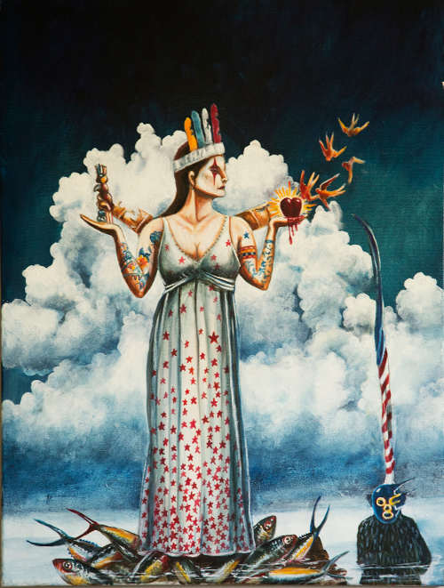 From an interview by Orange County Register reporter Richard Chang: “An American Indian and Mexican-American, Vargas' work penetrates the depths of identity, spirituality and an ancient world that America seems to have forgotten. ‘I'm always trying to tie that together,’ said Vargas. ‘Identity is the only thing I know that's tangible. It keeps meandering around with me. It gives me strength and ties me with my family.’"
