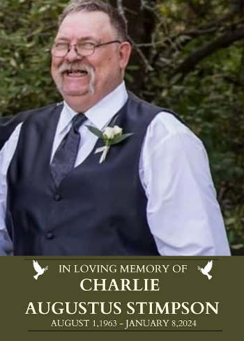 Charlie Augustus Stimpson was born at St. Helena Hospital, Deer Park, California, on Aug. 1, 1963, to Bill and Lorraine Stimpson and passed at St. Helena Hospital on Jan. 8, 2024.