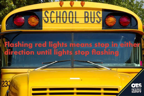 Lastly, remember to stop for school buses when red lights flash.