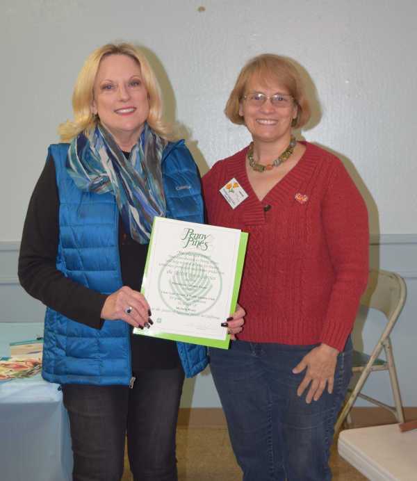 LAKE COUNTY, Calif. – At a recent Clear Lake Trowel and Trellis Garden Club meeting, Michelle Wisler was awarded a Penny Pine certificate for her special contributions from her work with the Lucerne Senior Center’s group with flower arranging.