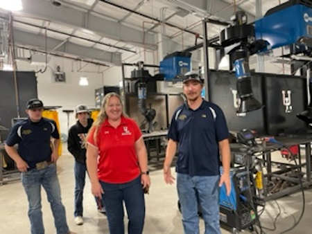 The community passed a bond in 2018 that enabled the school to fund an impressive large modern building, and grants subsequently funded state of the art instructional equipment, including a blueprint design program accessible to every student, massive workbenches built by the students themselves, and numerous welding stations where students can become efficient in both MIG and TIG welding.