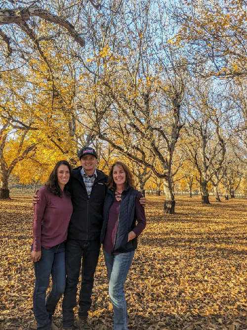 Colleen Rentsch and her daughter and son-in-law Jessica and Jordan Mihaelenko led a fascinating walk through their walnut orchard in the midst of harvest operations.