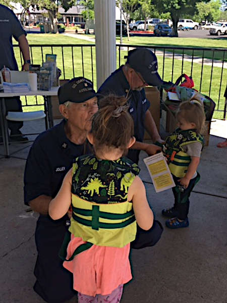 LAKEPORT, Calif. — On May 20, the U.S. Coast Guard Auxiliary, Flotilla 08-08 of Lake County, participated in National Safe Boating Week by holding a free life jacket giveaway for youngsters at Library Park in Lakeport.