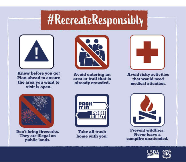 • Flammable items: The use of any fireworks, explosives or internal or external combustion engine without a spark arrester is prohibited on the forest. Always use caution with smoking. Extinguish all smoking materials dead out on bare soil. Pack out all cigarette butts and filters.