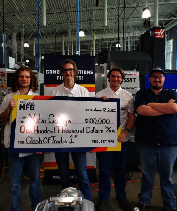 MARYSVILLE, Calif. – Yuba College’s Advanced Manufacturing program is celebrating a national victory after three of its students claimed first place in Project MFG’s Clash of Trades, a televised competition that challenges the best and brightest in advanced manufacturing, computer numerical control, or CNC, machining and additive technologies.