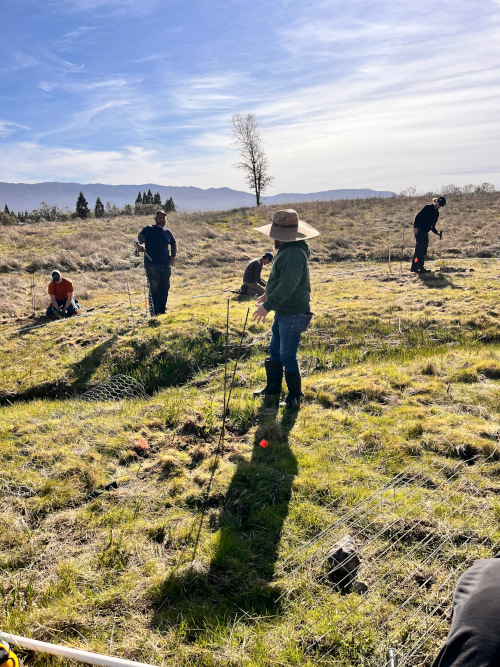 Agriculture students had the opportunity to learn about large-scale irrigation design and different strategies to water this vast number of plants. In addition to specific planting specifications, many of the shrubs and trees also need protective cages to assist in their establishment. All of these aspects were incorporated in this living lab lesson.