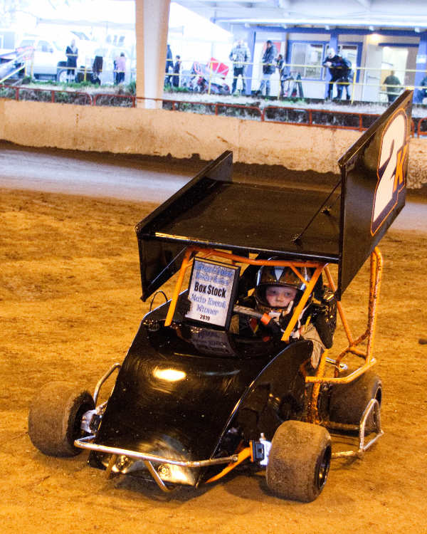 In the beginner box stock division, #24 Riley Fuchs won the trophy dash with #29 Cole Croft in second, #03 Nataila Tour in third and #0 Blake Scovel in fourth. Cole Croft drove his #29 machine to win the heat race with #24 Riley Fuchs in second, #53 Tanner Swim in third, #03 Natalia Tour in fourth and #0 Blake Scovel in fifth.