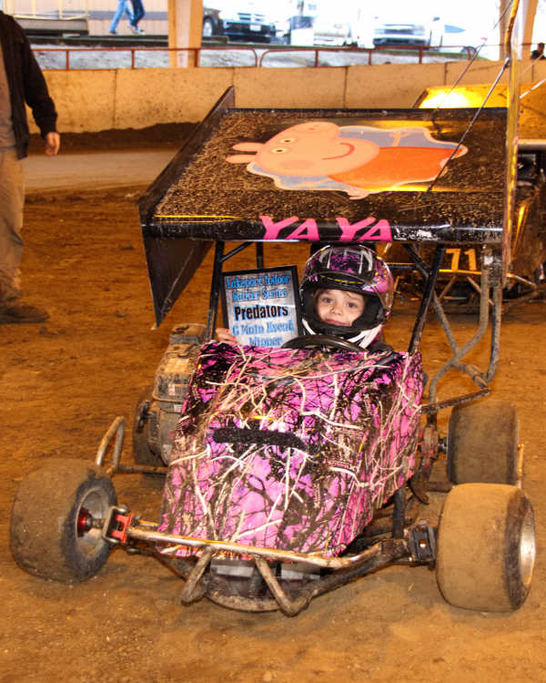 In the Predator division, the division was broken up into three different stages. Austin Comini, #3, won the Trophy Dash with #44 Jacob Thomsen in second, #3F Jax Fuchs in third and #57 Chandler Johnson in fourth.