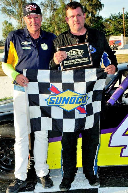 MADERA, Calif. – The 2019 North State / Madera Hobby Stock Challenge, presented by Gone Fishin’ Marine, concluded at Madera Speedway Saturday night with Howard Holden of Clovis not only taking the $750 win in the 50 lap feature, but collecting enough points to earn the championship in the three-race series. Going into the feature, Steve Schermerhorn of Oakhurst and Holden were only two points apart with Schermerhorn out in front in the standings.
