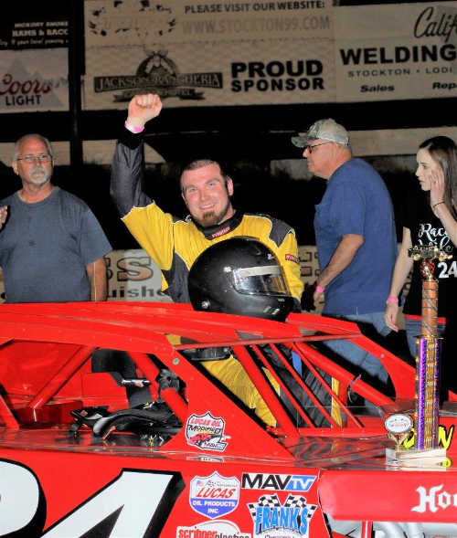 STOCKTON, Calif. – Robbie Knittel of Lodi drove the Ferrari Farms #24 modified to a $1,000 victory at Stockton 99 Speedway Saturday night as the North State Modified Series, presented by Protect the Harvest, completed race #4 of the 2019 Driving Out Cancer Awareness Tour.