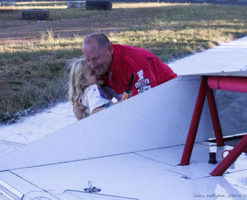 In the heat race, #4 Raymond Taylor Jr. finished second with his father Raymond Taylor in third, #20 Danney Helm in fourth and #48 Gene Odell Sr. in fifth.