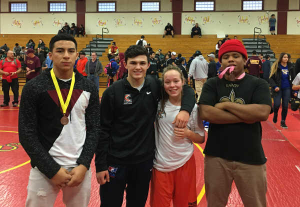 Competing for the boys were Michael Beverlin, 126 pounds, 1-2 record, DNP; Jacob Jensen, 132 pounds, 1-2 record, DNP; Alex Garcia, 152 pounds, 5-1 record, third place; Bryan Carrillo, 182 pounds, 3-2 record, fourth place; Javante Gregoire, 4-3 record, eighth place.