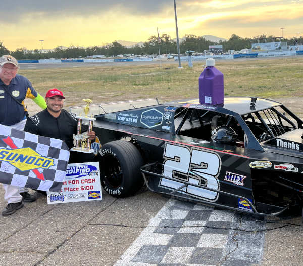 ANDERSON, Calif. — After an early race accident that eliminated Kelseyville’s Sal Martinez and Oregon driver Rich Cobb, Brandon White of Eureka took off like a bullet to lead the first half of the 60 lap Twyman Plumbing sponsored North State Modified Series main event.
