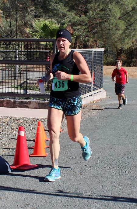 Repeat Boston qualifier Jennifer Perez, age 37, of Hidden Valley Lake, a top runner in the Lake County Milers, landed the top prize for the female division with a finish time of 48 minutes, 11 seconds (7:46 pace).